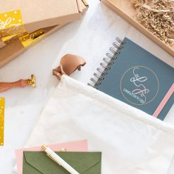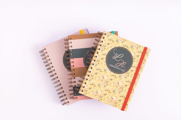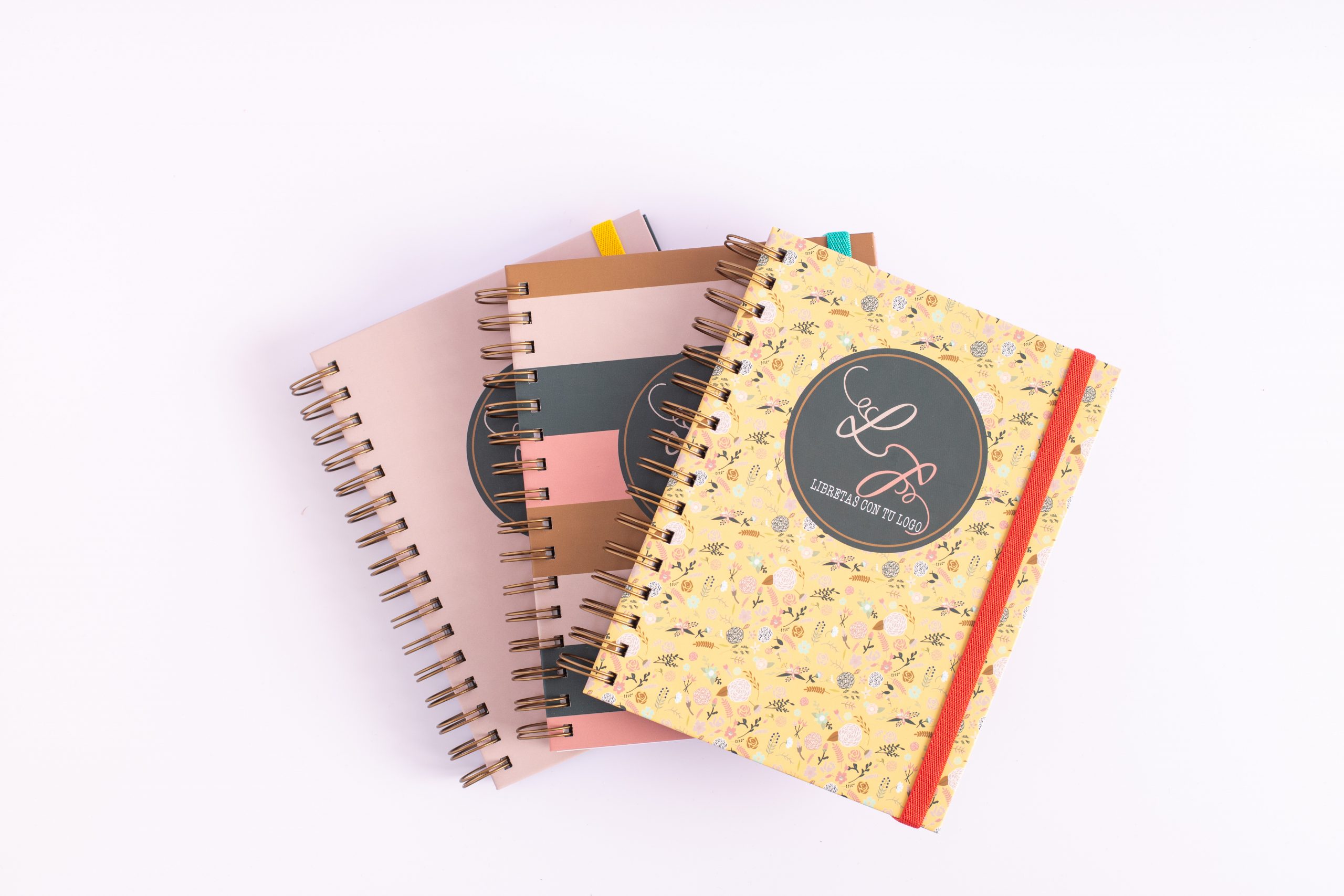 Cuaderno de tapa dura, cartón de 2mm forrado con papel laminado mate o brillo.